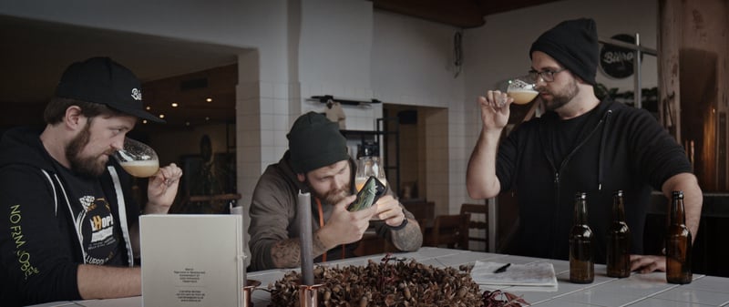 Christoph Bichler, Maximilian Karner, Marko Nikolic of Bierol doing quality control of their fresh bottled New England IPA