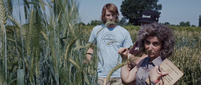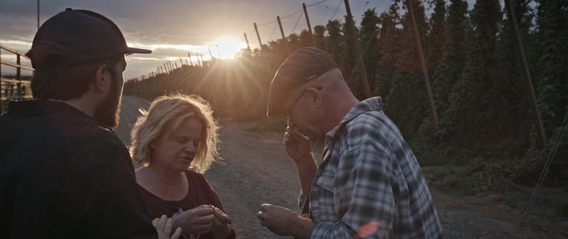Christoph Bichler (Bierol) meets Frezi and Peter Bouckaert (Purpose Brewing & Cellars) at the hopfields of the Perrault Farm in Yakima Valley, Washington State