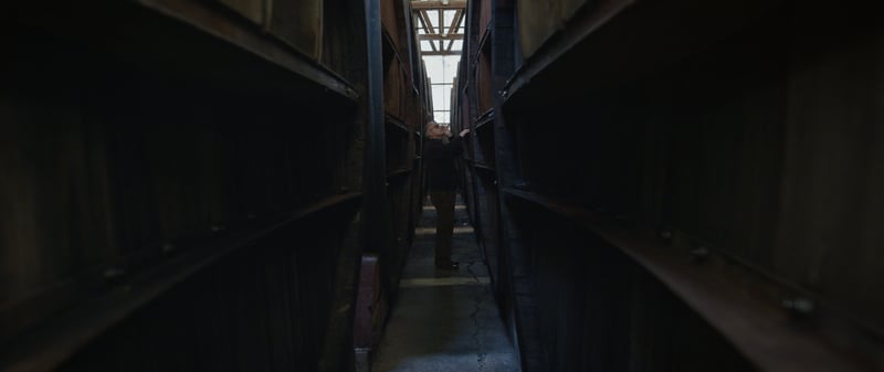 Belgian brewer Frank Boon inmidst of his foeders of Lambic beers