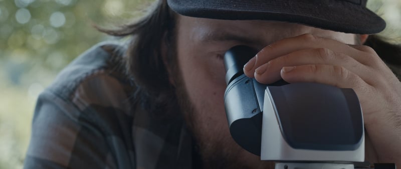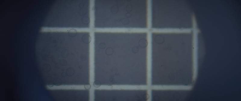 Christoph Bichler (Bierol) counting yeast cells under the microscope