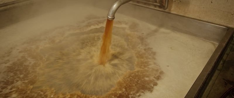 the wort goes into the coolship to get spontaneous fermentation started - Brewery Boon, Lembeek, Belgium
