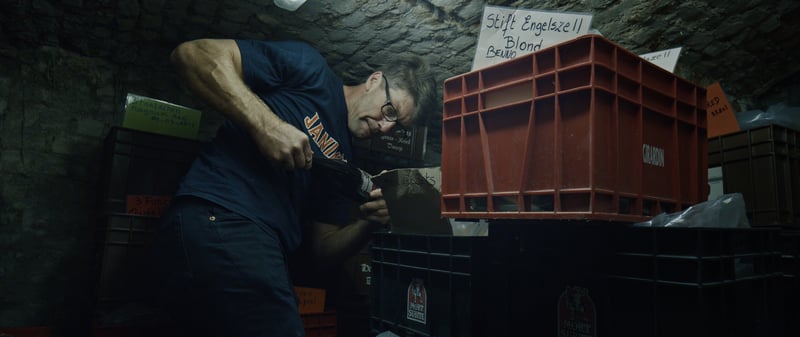 Kurt Panneels with a bottle of a 50 year old Geuze beer in the cellar of his world-famous beer bar In de Verzekering tegen de Grote Dorst