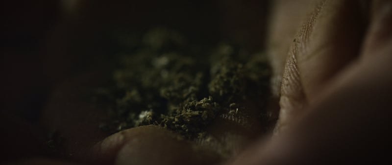 hop farmer Matthias Siebler rubbing & sniffing of fresh Herkules hop cone in Wolnzach, Germany