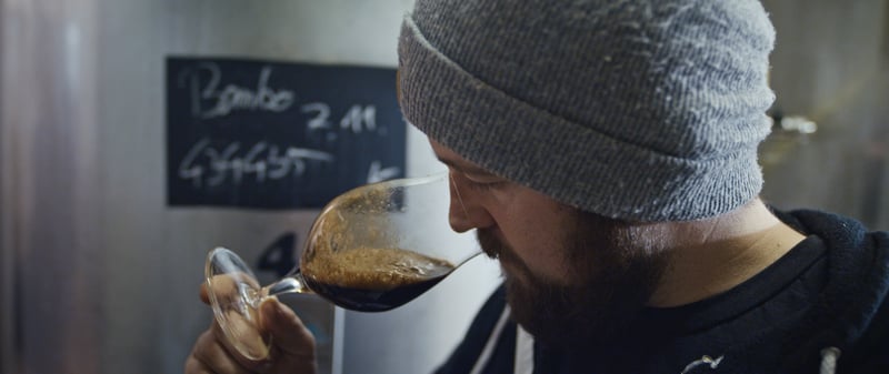 Christoph Bichler tasting his Double IPA during the fermentation process