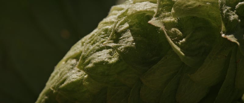 Simcoe hop cone up close at Perrault Farm, Yakima (WA), USA