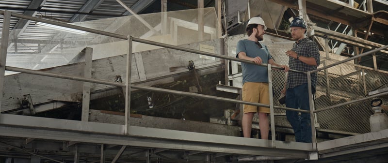 Christoph Bichler (Bierol) and Tyler Carpenter watching the processing of the hops during harvest