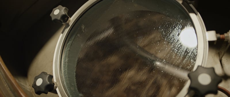 Frank Boon controlling the coolship at his Lambic brewery in Lembeek, Belgium